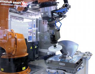 La robotisation est un autre thème restant actuel dans l'usinage de métal. D'un côté, les robots sont de plus en plus puissants. Les fabricants présentent des robots soulevant et déplaçant facilement des pièces de plus d'une tonne. D'autre part, les fabricants de robots cherchent des systèmes collaborant mieux avec l'homme. Cette évolution s'est amorcée au printemps dernier au Hannover Messe et à EMO Milano, les premières applications dans l'usinage étaient visibles. Le robot et l'opérateur travaillent ensemble sur la fraiseuse CNC pour le chargement. Le principal avantage, c'estqu'il ne faut plus de protection. La machine reste ainsi plus accessible pour l'opérateur voulant réaliser des pièces uniques ou le réglage d'une nouvelle opération de fraisage la journée. La limite de ce type de robots est actuellement toujours le poids maximal qu'ils peuvent lever, soit moins de 35 kilos.